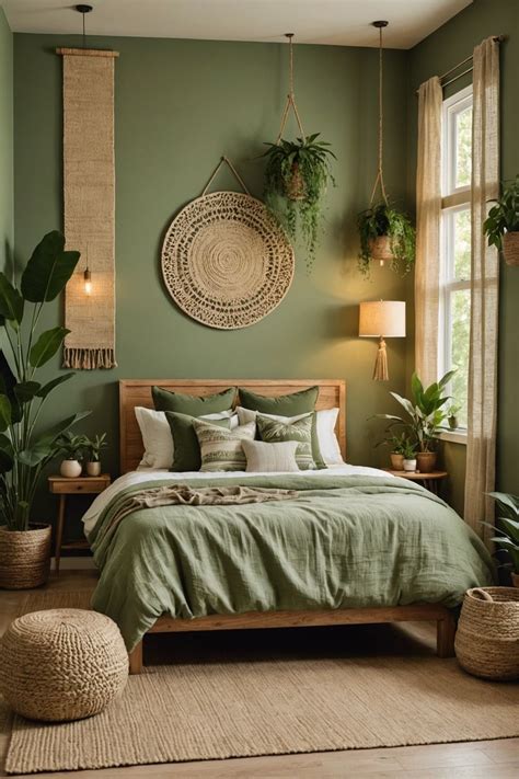 For a free-spirited touch, incorporate ethnic patterns, macrame, and textured textiles. Sage green walls or bedding provide a grounding backdrop for colorful accents.