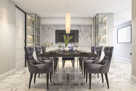 2. Layering Neutrals: Incorporating various shades of grey and white within the dining room creates depth and visual interest. Pair a light grey wall color with darker grey accents in furniture and décor. Introduce white elements such as tablecloths, drapes, and light fixtures to maintain a sense of balance.
